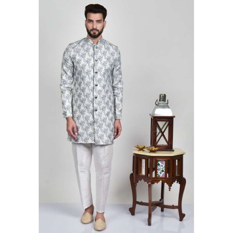Grey Front Open Men Kurta & Pajama Designer Menswear