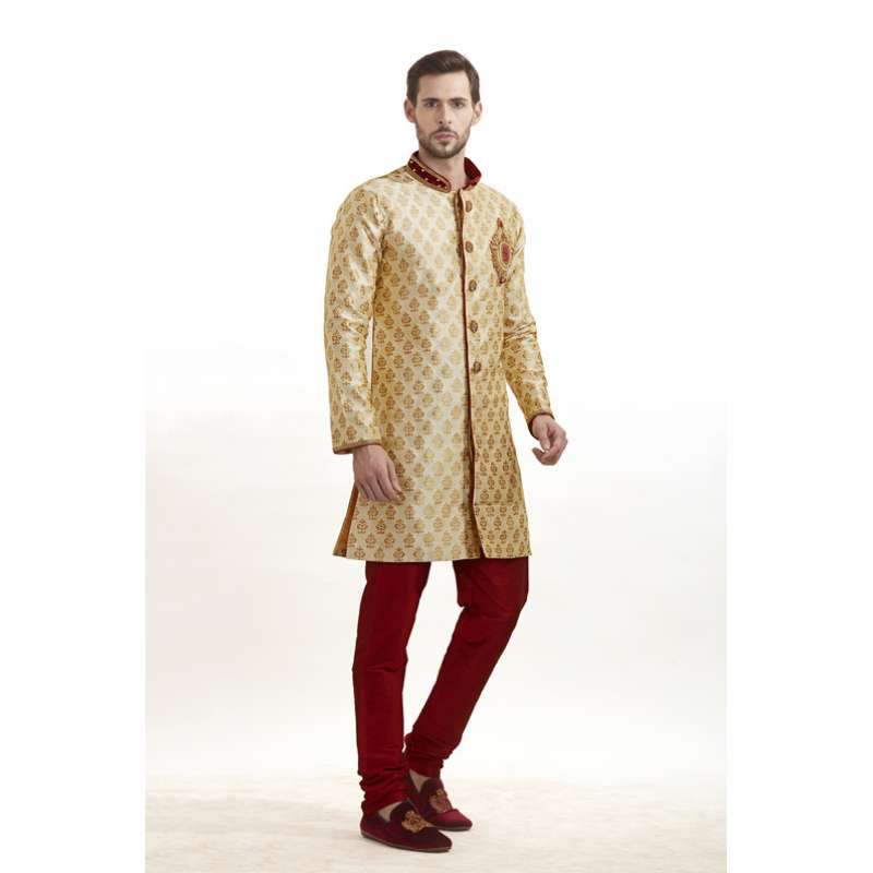 GOLD AND MAROON SLEEK KURTA AND PAJAMA INDIAN MEN'S WEAR