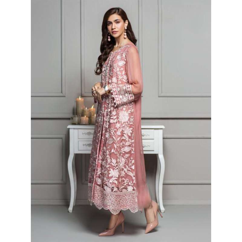 Pink & White Embroidered Pakistani Suit Fancy Wedding Dress