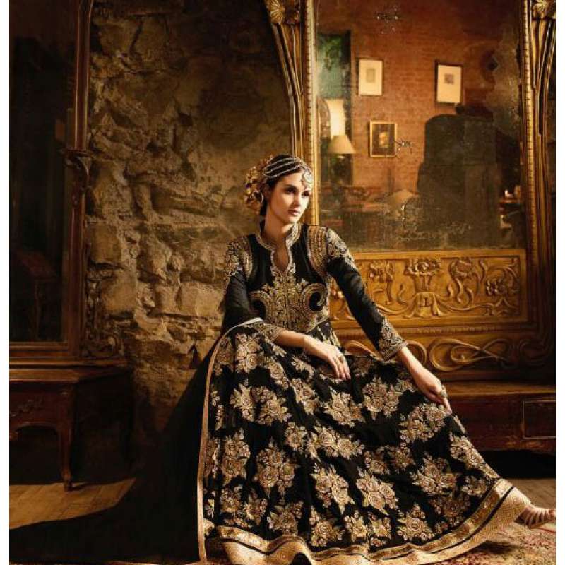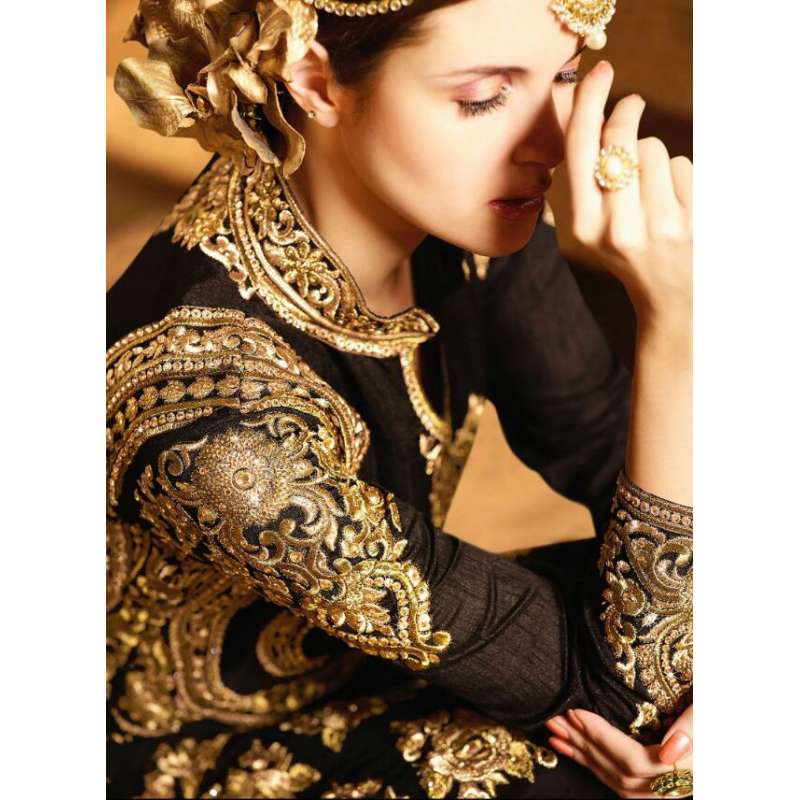 S-64 BLACK AND GOLDEN SYBELLA ANGELLIQUE WEDDING WEAR DRESS