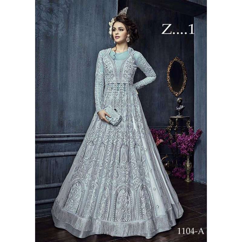 Silver Grey Indian Anarkali Gown Embroidered Wedding Dress