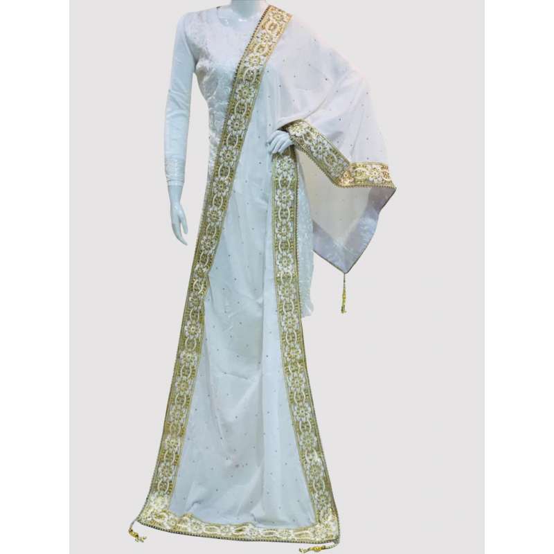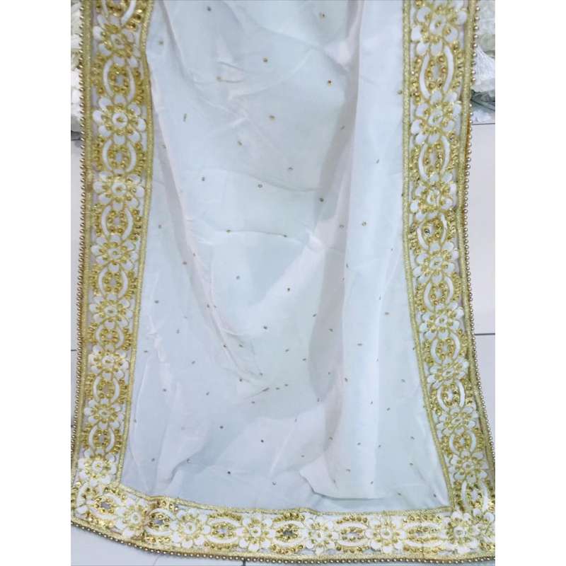 VELVET FABRIC SHAWL ! HEAVY CUTWORK CONTRAST GOLD COLOUR LACE WITH ZARI & HAND EMBROIDERY BEADS/ STONES ALL OVER BORDER. SCATTERED SINGLE BEADS/STONES ALL OVER. MATCHING GOLD LATKAN ON 4 CORNERS OF DUPATTA.