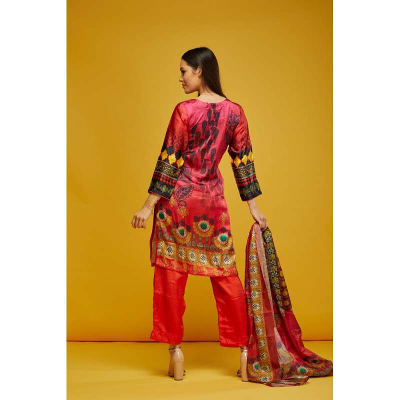 Readymade Pakistani designer printed silk salwar suit. it also comes with dupatta.