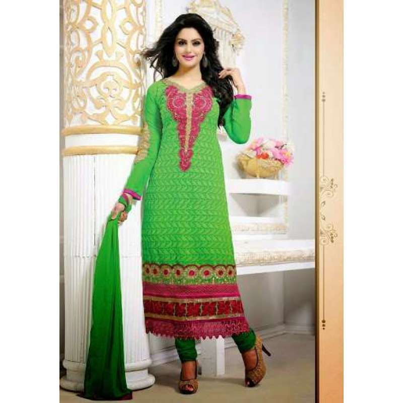 An appealing Stunning New Long Georgette Designer Dress in Green comes with Embroidered Shirts and Fancy Embroidered Bottoms. Give yourself stunning look with these new and unique desiner dresses to fulfill your every desire and need.