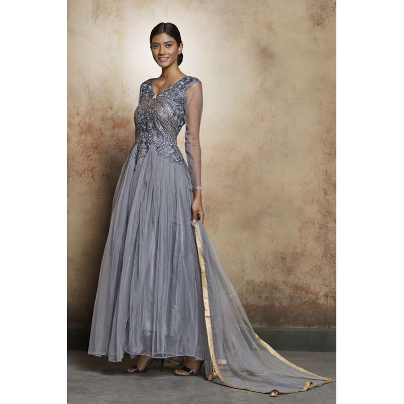 DAZZLING GREY LONG SHEER STYLE READY MADE INDIAN DRESS