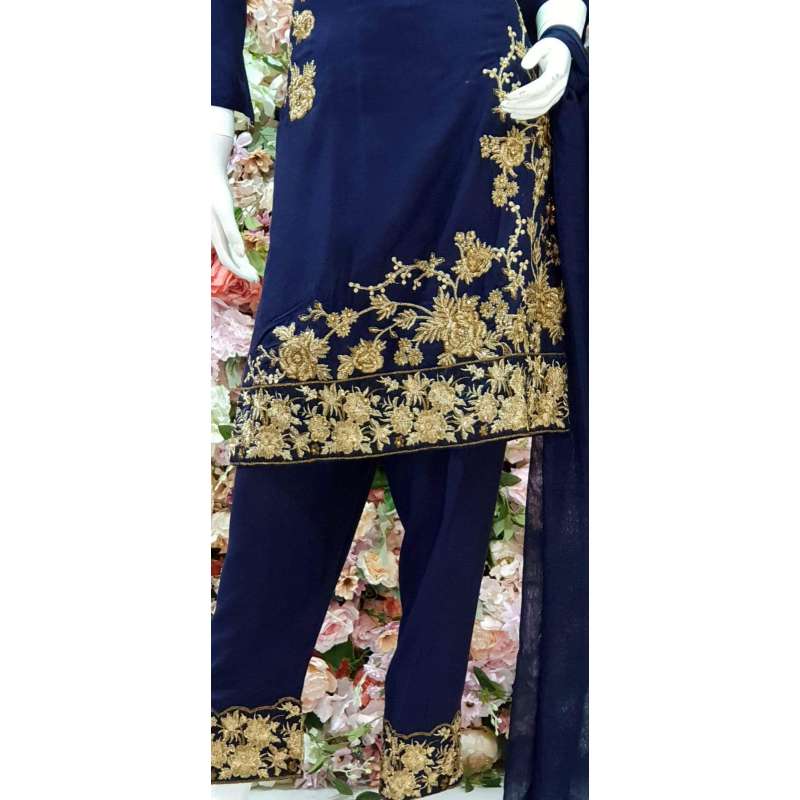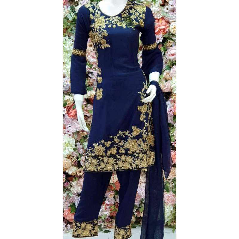 NAVY BLUE PAKISTANI DESIGNER READYMADE LINEN SUIT