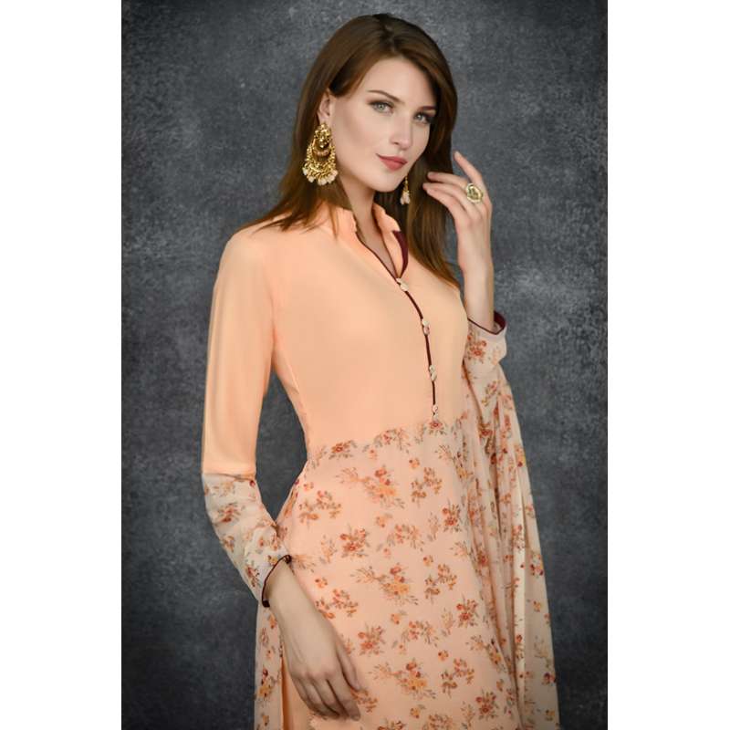 Peach Nougat Floral Printed Designer Readymade Salwar Kameez