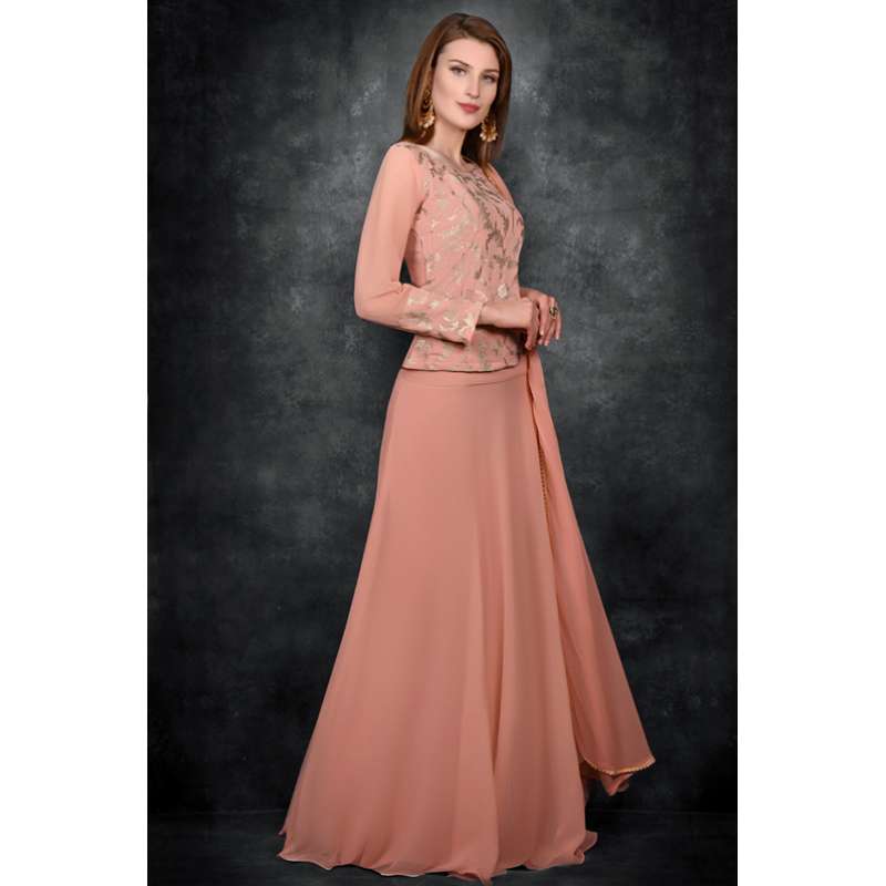 Peachy Pink Indian Designer Lehenga Partywear