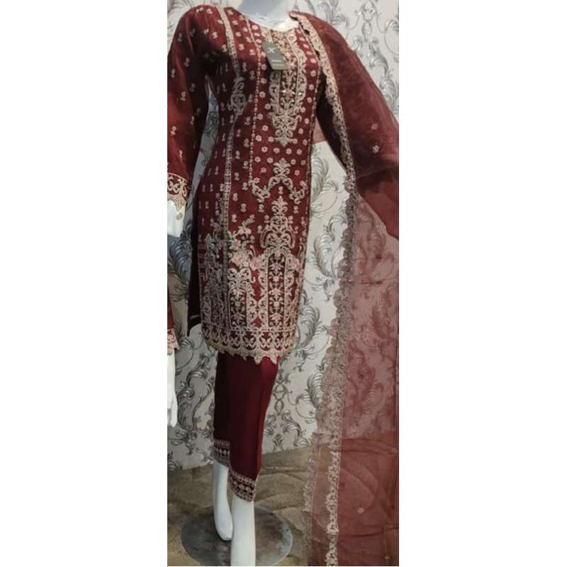 Maroon Heavy Embroidered Readymade Eid Salwar Suit