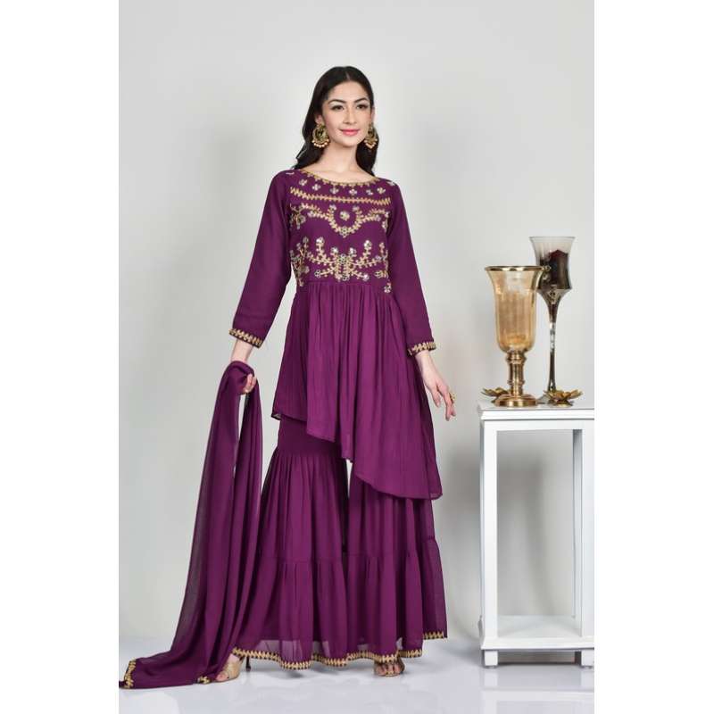 Purple Punjabi Style Georgette Gharara Indian Wear