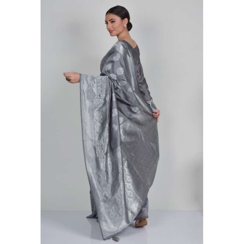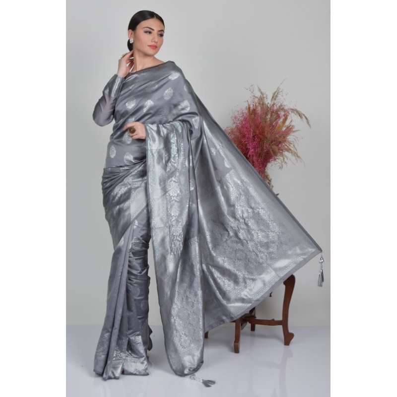 Grey Banarasi Party Wear Designer Saree