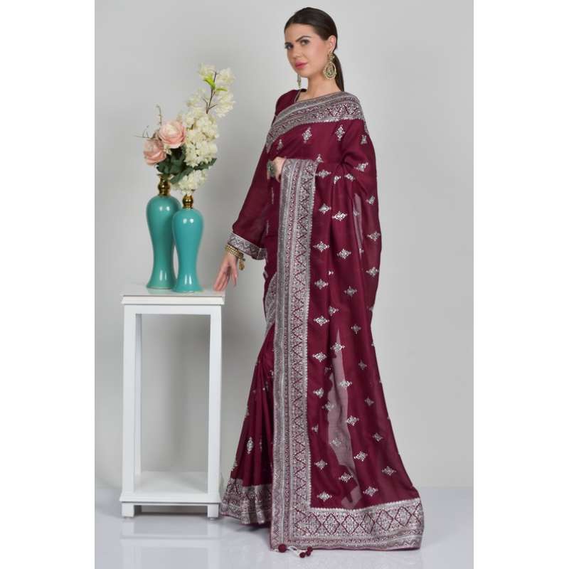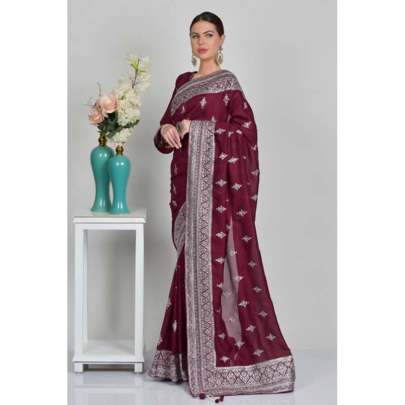Plum Embellished Party Evening Saree