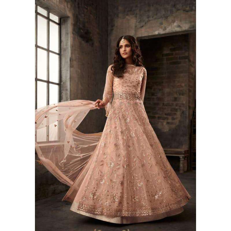 Peach Net Heavy Embellished Wedding Wear Anarkali Dress